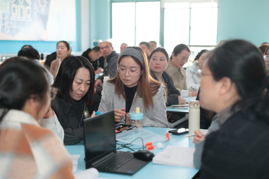 上午十时,活动迎来又一高潮。特邀专家、来自江南大学的刘向永博士为全体与会教师带来了题为《基于STEAM理念下项目式学习活动设计》的精彩主题演讲。刘博士深耕STEAM教育领域多年,理论功底深厚,实践经验丰富。他从国际STEAM教育的发展趋势切入,深入剖析了项目式学习(PBL)的核心要素与设计原则,强调了真实情境、驱动性问题、持续探究、作品导向与公开表达在项目设计中的关键作用。演讲中,刘博士结合大量来自教学一线的生动案例,层层递进地阐述了如何基于课程标准、学生兴趣与社会生活设计有价值的项目主题,如何有效搭建学习支架以支持学生的探究过程,如何在项目推进中有机融入科学、技术、工程、艺术与数学等多学科知识,以及如何构建多元、过程性的评价体系。刘博士的演讲内容充实、逻辑清晰、语言生动,既有理论高度,又极具实践指导价值,引起了在场老师的强烈共鸣与深入思考。会场内掌声阵阵,老师们纷纷表示,刘博士的讲座如同一场“及时雨”,为他们在日常教学中有效开展STEAM项目化学习活动提供了清晰的方法论指引和丰富的灵感来源。