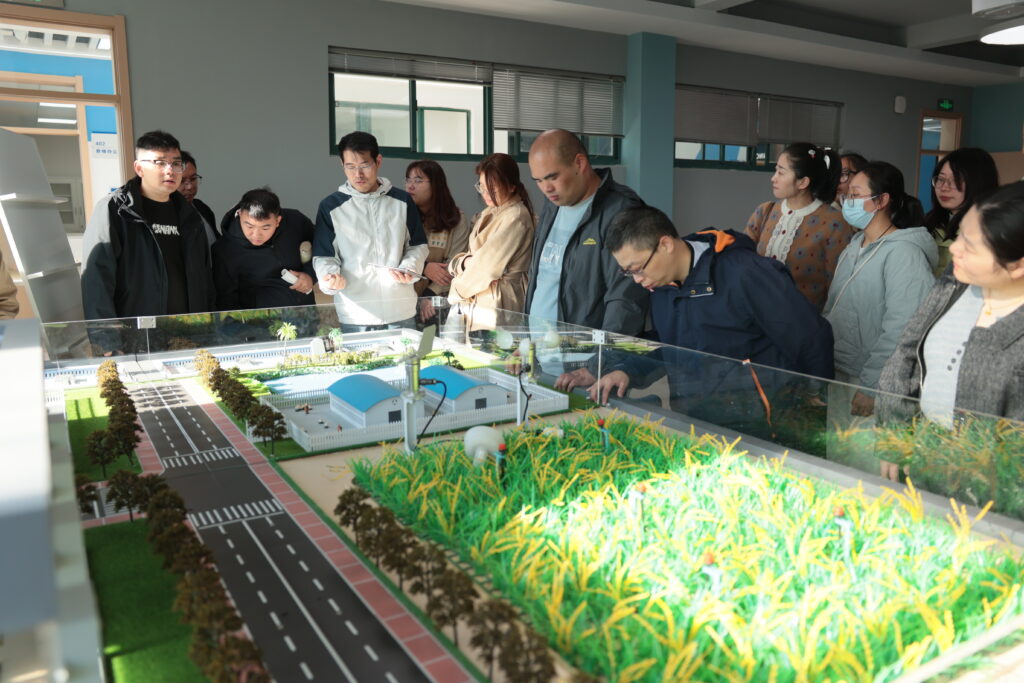 随后,在浓厚的研讨氛围中,滨海中学张友春老师为与会者带来了一场内容翔实、成果丰硕的分享。他详细介绍了学校工程智造课程基地从蓝图到现实的建设发展历程,生动解读了基地以“智造”为核心,融合机械、电子、信息、艺术等多学科元素的模块化组成架构。尤为引人注目的是,张老师如数家珍般地展示了课程基地建设以来,学生在各级各类科技创新大赛、工程挑战赛中取得的骄人成绩,充分彰显了项目化学习在激发学生潜能、赋能个性成长方面的显著成效。理论的阐述最终需要实践的印证。分享结束后,张友春老师引导与会教师们移步至智慧农业沙盘展示区。在这里,抽象的物联网概念化为了触手可及的实践场景。老师们亲眼目睹了如何通过传感器实时采集环境数据,如何通过无线网络远程控制灌溉、温湿度调节等操作,亲身感受到了物联网技术如何精准赋能现代农业生产,对“感知-传输-控制”的智能化流程有了直观而深刻的理解。不少老师亲自操作设备,体验指令下发与执行的即时反馈,惊叹于技术为传统行业带来的颠覆性变革,也对如何将这种前沿科技体验转化为课堂教学资源产生了浓厚兴趣。意犹未尽地离开智慧农业沙盘,老师们又兴致勃勃地穿梭于工程智造课程基地的各功能教室之间。从充满机械美学与编程逻辑的机器人实验室,到将创意变为现实的3D打印与激光雕刻室;从专注于电子设计与制作的创客空间,到融合了结构与美学的木工坊……每一间功能室都像一个微缩的创新工厂,展示着项目从构思、设计到制作成型的完整链条。老师们驻足观看学生作品,与基地指导教师深入交流,感受着不同功能室所承载的独特教学功能与创新魅力,对跨学科融合的实践路径有了更为具象化的认知。