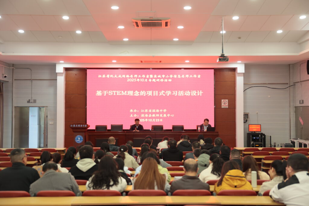 课程基地讯 秋意渐浓,学术氛围分外热烈。2025年10月23日,江苏省滨海中学工程智造课程基地迎来了一场教育思想的碰撞与实践的探索。省网络名师仇大成工作室全体成员携手县内众多中小学校教师齐聚一堂,围绕“STEM活动项目化开展”这一前沿主题,展开了一场深度研讨与沉浸式体验并行的学术盛宴。
